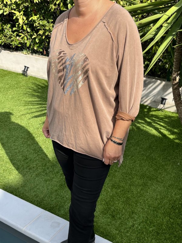 Superbe T-shirt manche longue avec un coeur pailleté.